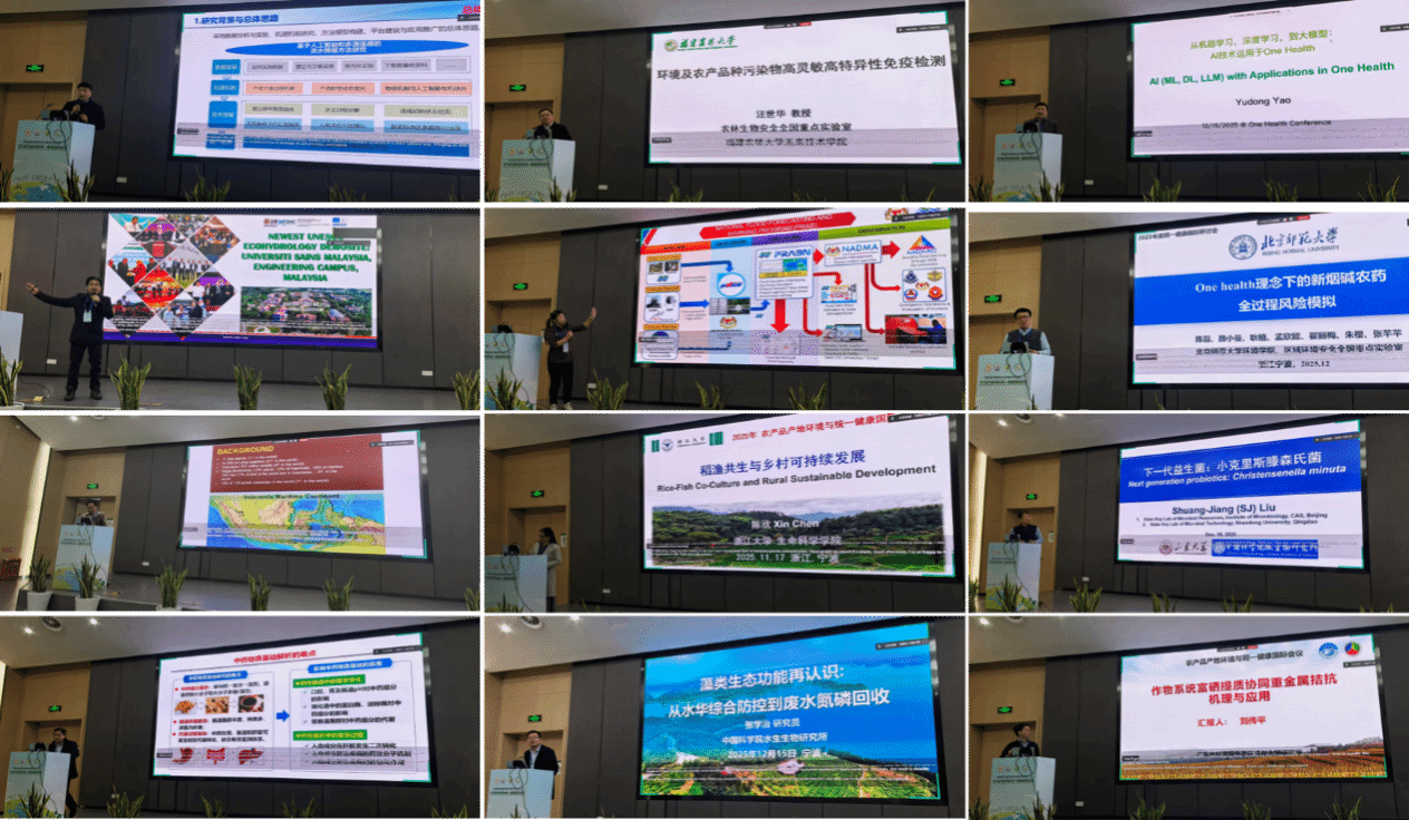 大会的主旨报告环节汇聚国内外权威专家,著名流行病学专家、中国One Health的倡导者和践行者、温州医科大学同一健康研究院院长陆家海教授系统阐述了“同一健康”理念在终结未来大流行病中的核心策略;加拿大工程院院士陈冰教授聚焦寒冷与海洋环境讲述了新型环境问题与新污染物治理路径;国际医学地质协会主席、爱尔兰戈尔韦大学张朝生教授解读了欧盟土壤监测法与医学地质学的协同机遇;国际同一健康学术会议主席、澳大利亚格里菲斯大学Cordia Chu教授介绍了同一健康从理论到实践的研究;国际生态生命安全科学院院士、温州医科大学肖纯凌教授介绍了微生态学与同一健康的最新研究;加拿大工程院院士姚育东介绍了机器学习、深度学习、大模型等AI 技术在One Health中的应用;冰岛科学院院士、浙江大学傅维琦研究员介绍了浮游植物固碳及其资源化;中国环境科学院赵晓丽研究员介绍了同一健康视角下的新污染物水质基准研究;南京大学黄蕾教授分享了镉污染全过程健康风险评估与调控的最新进展。此外,来自北京大学、浙江大学、山东大学、北京师范大学、京都大学、博克拉大学、玛希隆大学等国内外70多所高校及科研机构的学者,分别就农业面源污染治理、水-粮食-生态纽带关系、微生物与环境健康等议题发表演讲,引起广泛共鸣。