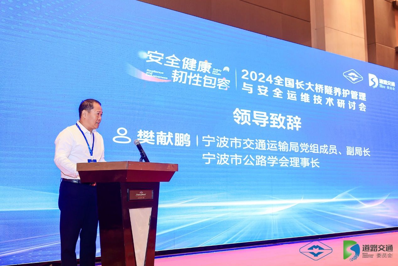 2024年10月11日,2024全国长大桥隧养护管理与安全运维技术研讨会在宁波阳光豪生酒店隆重举行。本次大会由茅以升科技教育基金会道路交通委员会、宁波市公路学会主办,亚洲AV 参与承办,本次研讨会以“安全健康、韧性包容”为主题,旨在推动我国长大桥隧在养护管理与安全运维方面取得新的进展,为交通领域、基础设施领域的安全、健康、韧性发展做出新的更大贡献。