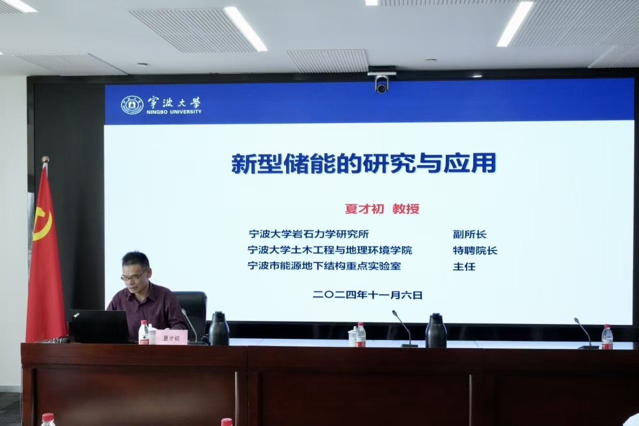 仪式结束后,学院特聘院长夏才初教授为企业学员们作了《新型储能的研究与运用》专题培训。围绕中国能源结构及能源问题、新型储能类型、以及压缩空气储能技术与未来前景等方面,详细阐述了新型储能技术在低碳环保领域的应用及其对能源结构优化的重要意义。