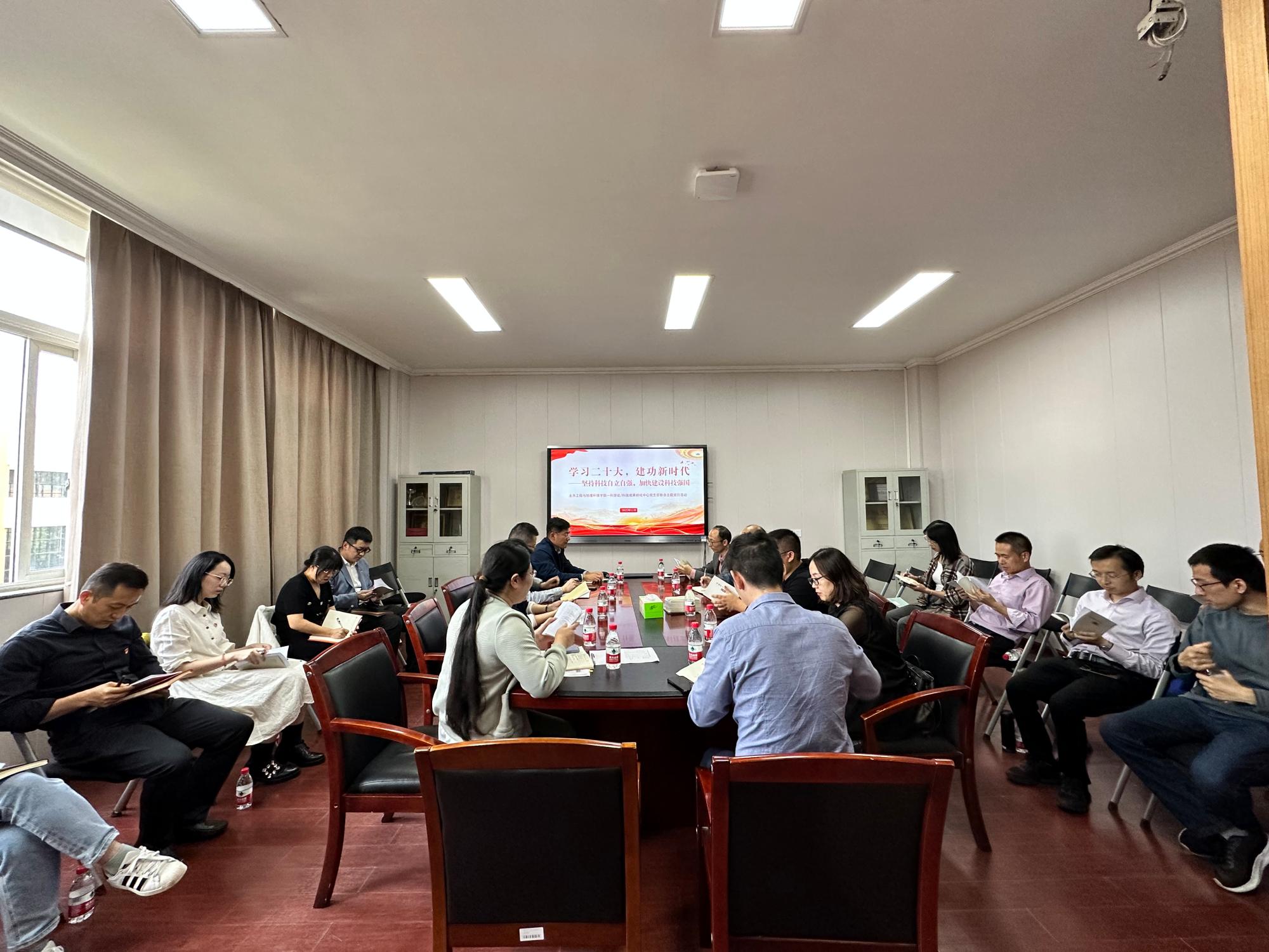 11月11日下午,亚洲AV 党委与科技成果转化中心党支部联合开展“学习二十大,建功新时代——坚持科技自立自强,加快建设科技强国”主题党日活动,科技处/科技成果转化中心党支部党员代表、亚洲AV 部分教师党员代表参加了此次活动,会议由土环学院党委副书记、纪委书记朱剑琼主持。
