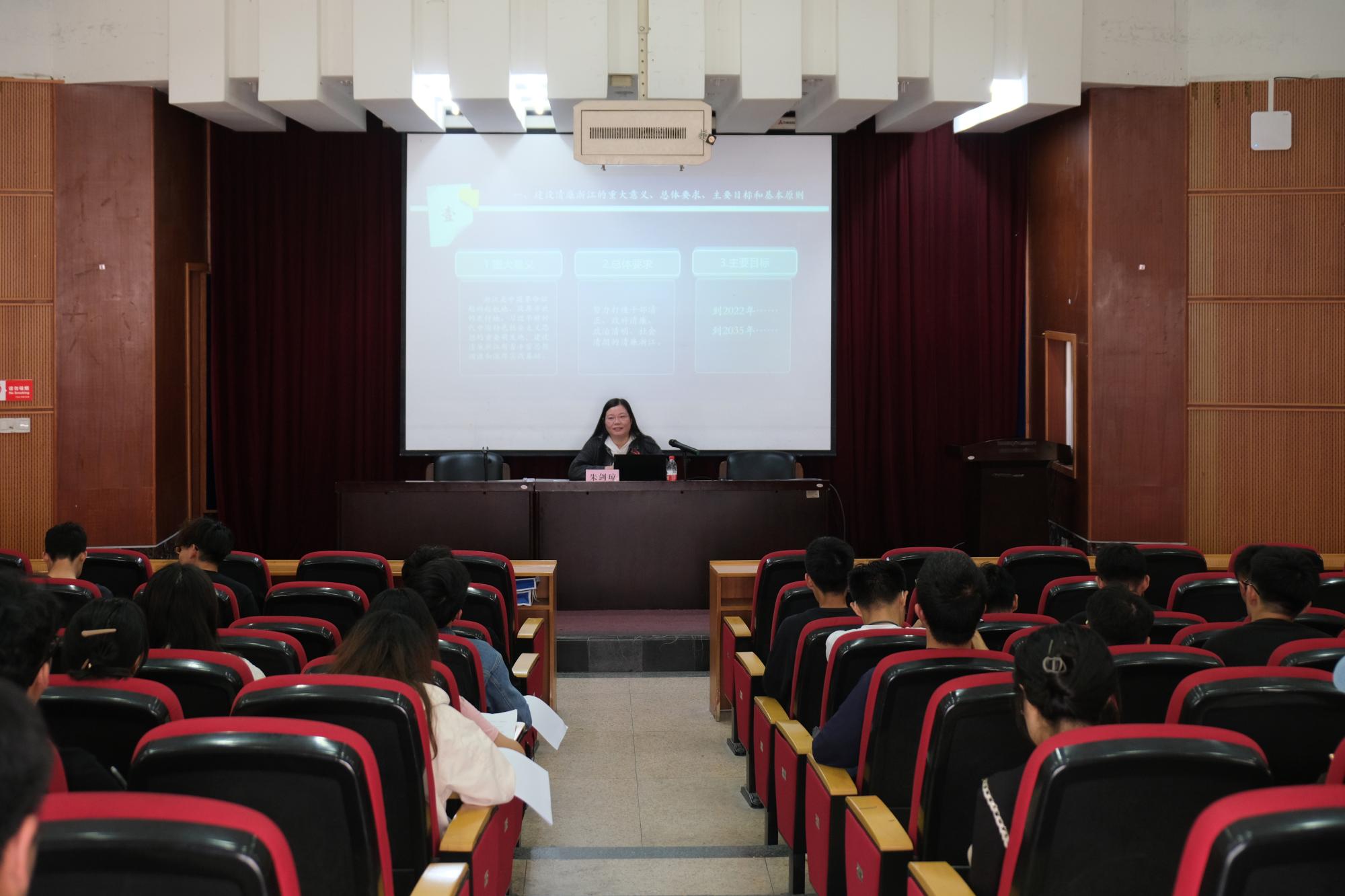 青年强则国强,青年正则国正。五四青年节当天,亚洲AV “大学生清廉教育”专题党课在学院一楼报告厅开讲。学院党委副书记、纪委书记朱剑琼以“一起谈谈:‘清廉土环’的那些人、那些事”为题,开展了一堂别开生面又具有深刻教育意义的党课。此次党课是习近平新时代中国特色社会主义思想主题教育的系列党课之一,也是学院本学期分党校第二讲。学生入党积极分子、发展对象等100余人参加。