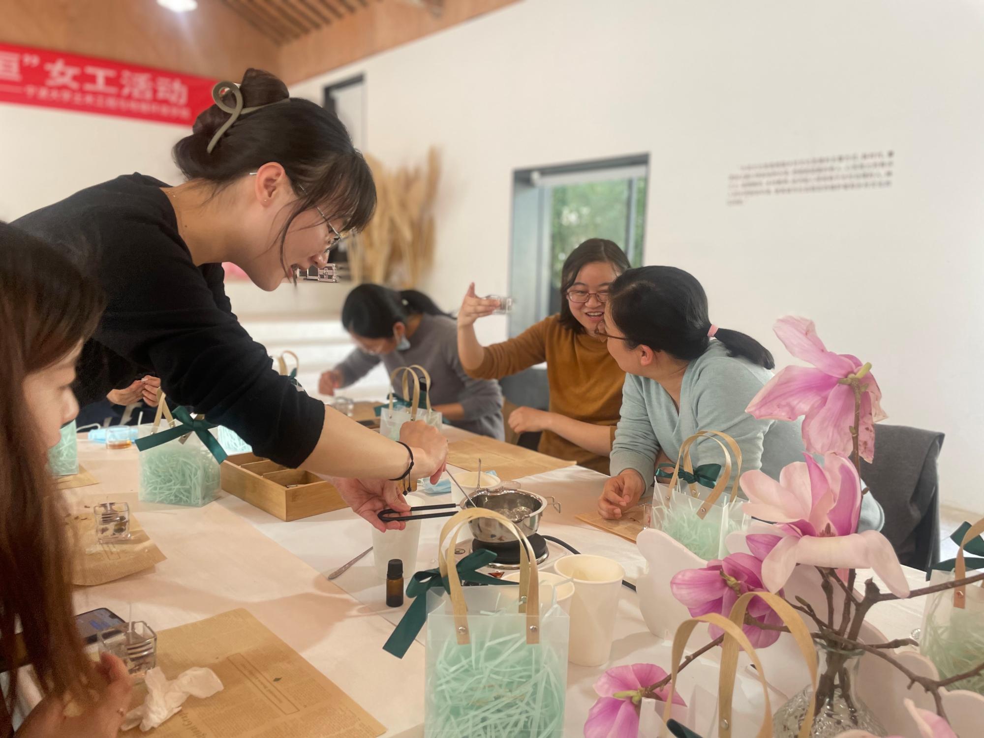 在这乍暖还寒的初春,3月8日下午,为充分展现女教工的巾帼风采,进一步提升女教工的审美意识和丰富女教工业余生活,亚洲AV 分工会举办了“春日暖香,美丽永恒”手作香薰蜡烛女工活动,院党委副书记朱剑琼以及女教工共三十余名参加。
