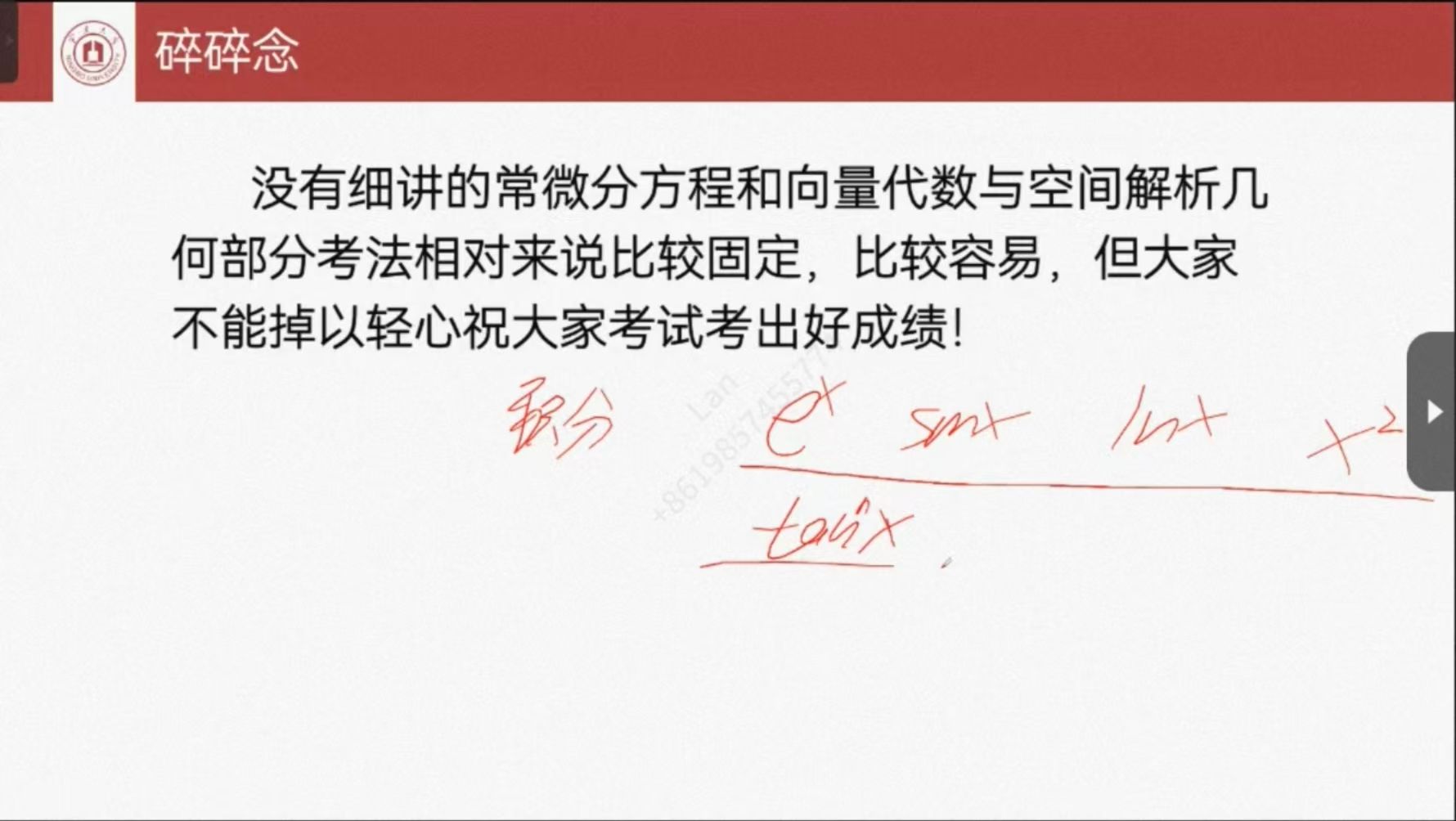 在具体内容讲解中,徐茁学长还对高等数学中的重点板块进行了系统梳理,从极限、导数到积分计算,通过典型例题串联知识点,帮助同学们建立起更清晰的知识框架。在讲到证明题时,学长特别提醒大家注重逻辑严谨性,强调依据定理条件逐步推导,避免因审题不严或想当然而失分。