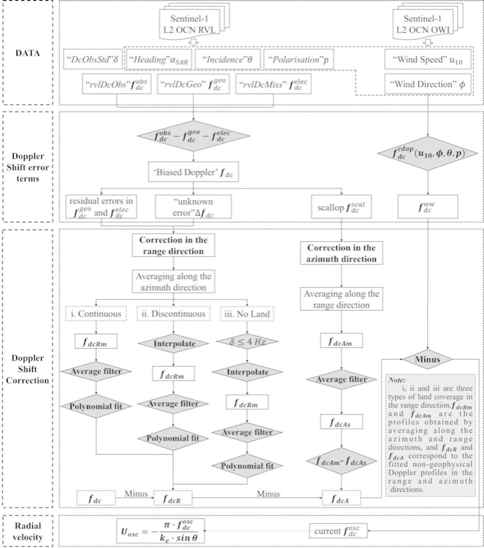 团队硕士研究生谭本华、王利花副研究员等在《GIScience & Remote Sensing》期刊上发表了题为“基于Sentinel-1 SAR数据反演黑潮径向流速方法研究”的文章,本文提出了一种针对SAR海流监测的改进算法,特别适用于缺乏陆地覆盖的区域如黑潮。该方法通过校正非地球物理误差(如天线指向错误)和风浪引起的误差,提高了海流速度反演的精度。经过校正后,SAR反演流速与实测值的相关性显著提高,准确性增强(相关系数从0.686提升至0.806,RMSE从0.215m/s降至0.13m/s)。此算法有效提升了在无或少陆地参考区域的海流监测能力。